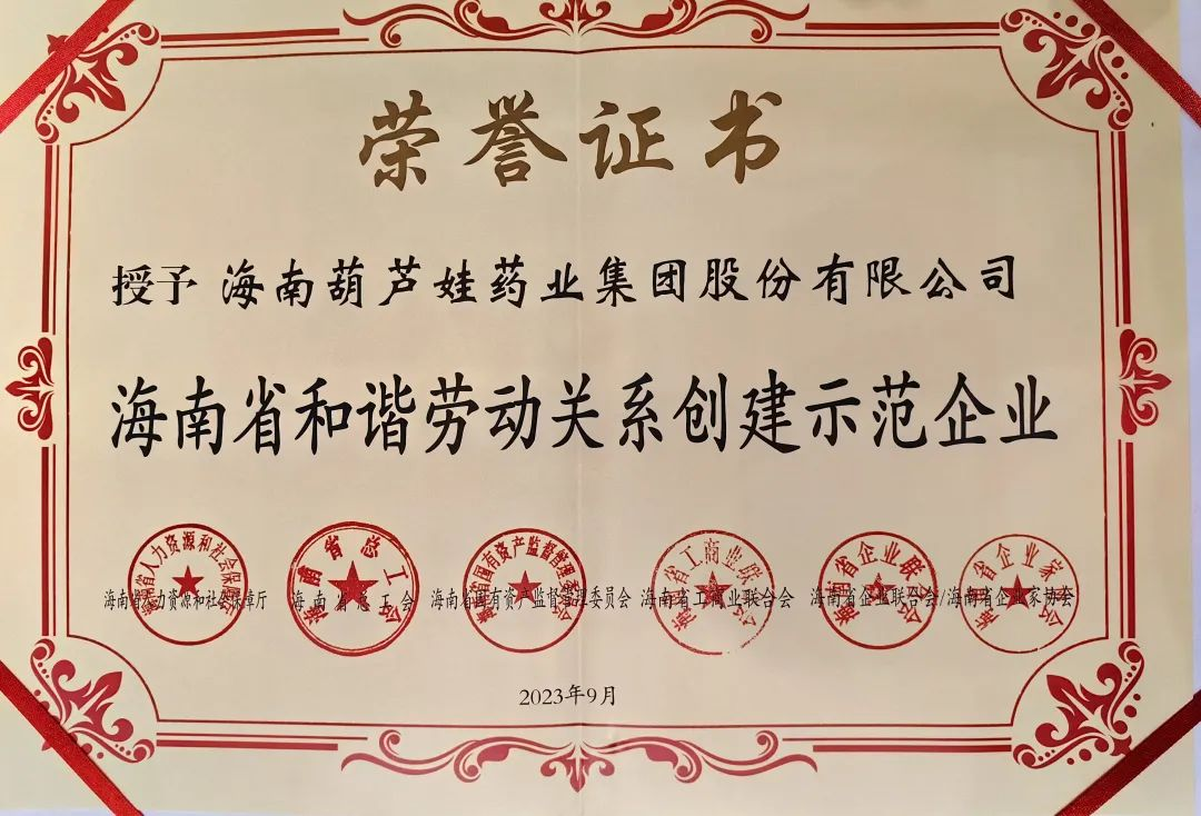 龙8药业集团获评“海南省和谐劳动关系创建示范企业”